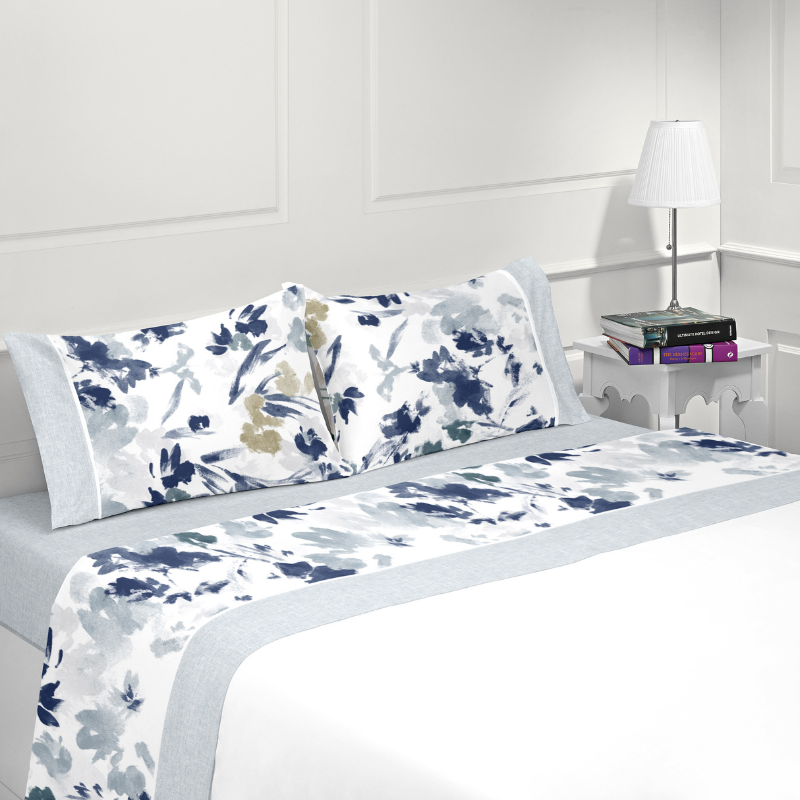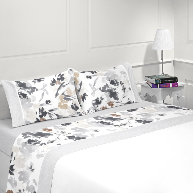As pinceladas em tons suaves acrescentam movimento e profundidade ao tecido. Ao mesmo tempo, mantêm uma estética subtil que não sobrecarrega o ambiente. Dessa forma, o jogo de cama adapta-se facilmente a diferentes estilos de decoração, desde espaços minimalistas até quartos mais acolhedores e contemporâneos.