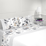 No geral, o Jogo de Cama Algodão Vouga distingue-se pela combinação entre o mesclado elegante e o padrão abstrato em pinceladas, resultando num visual equilibrado e atual. Por isso, é a escolha ideal para quem procura renovar o quarto com um toque moderno, confortável e versátil.