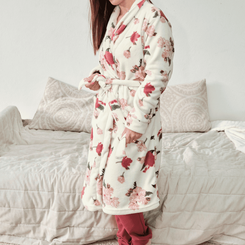 Outro ponto positivo é a versatilidade. Como a cor é neutra, o robe combina facilmente com diferentes tipos de pijama ou roupa de casa. Além disso, a presença do padrão floral dá sempre uma sensação de renovação, o que torna o uso diário mais agradável. Por fim, este modelo funciona também como uma excelente opção para oferecer, sobretudo a quem valoriza conforto aliado a um visual cuidado. O Robe Flores junta leveza, funcionalidade e um desenho harmonioso que acompanha qualquer rotina com simplicidade.